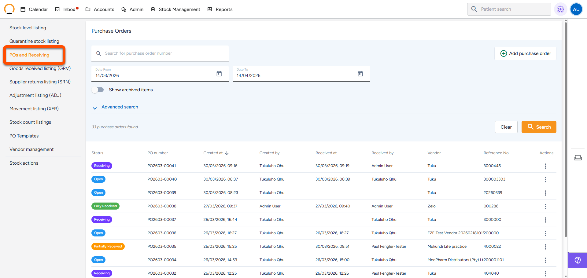 - When stock arrives, mark it as received, partially received, or failed (e.g. damaged)