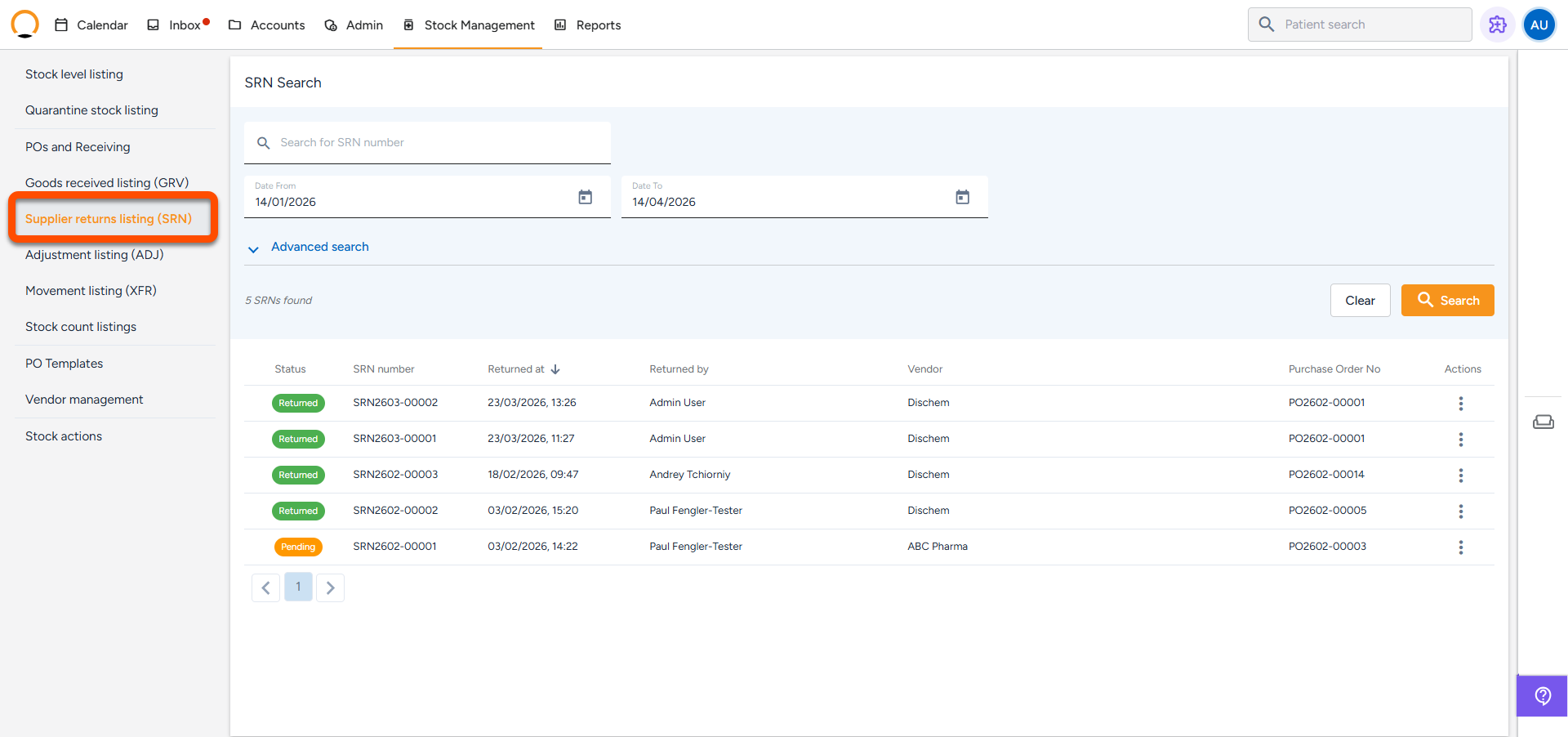 - Create a Supplier Return Note (SRN) for anything you need to send back to the supplier.
